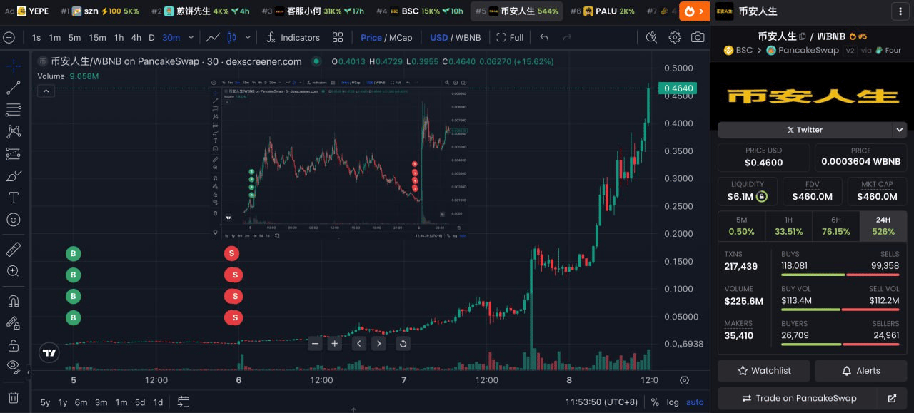 Wednesday, Oct 8th: An unlucky trader sold 22.1M 币安人生 for just $23K, one hour before the massive pump. That bag is now worth over $10M.