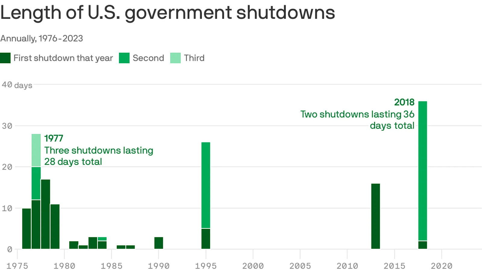 It’s likely to last for weeks, just like Trump’s last shutdown in 2018. ⏳