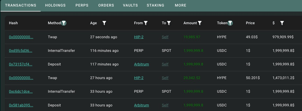 Monday, Oct 6th: A whale opened a fresh wallet and dropped 4M $USDC into Hyperliquid to scoop up $HYPE for $2.89M.