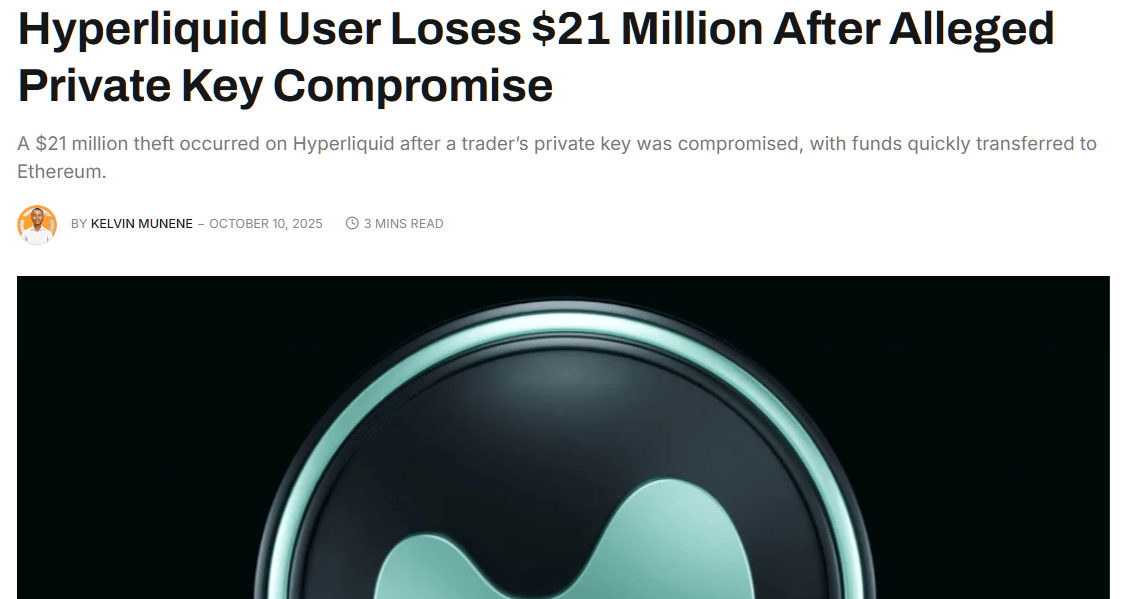 A trader lost $21M in a Hyperliquid wallet breach, highlighting ongoing security risks.